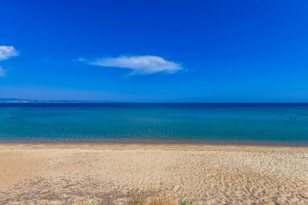In the light-blue sea, at the long beach of Agios Mamas (3.500 m) in Toroneos Gulf, one can enjoy swimming and relax under the bright sun. The various beach-bars and small taverns offer coffees, local delicacies and beverage in a tranquil and relaxing atmosphere on a 24h basis. This lengthy sandy beach with shallow and clear waters is been awarded every year with the Blue Flag eco-label.