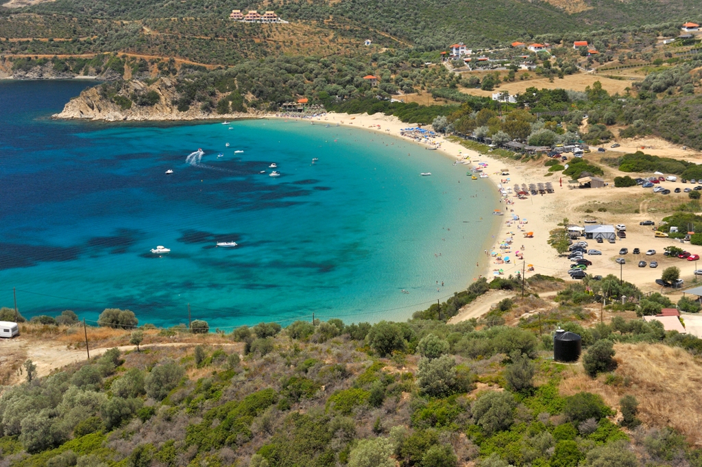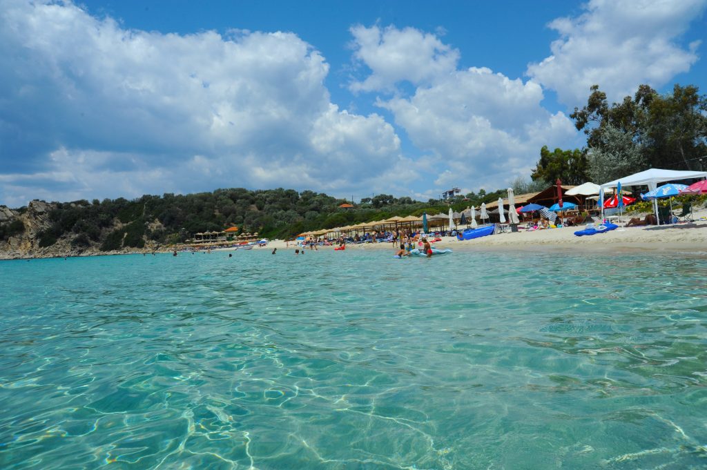Alykes is one of the most popular “Blue Flag” beaches of Ammouliani. This is several hundred meters long; its white sand in combination with the green waters reminds you of an imaginable exotic oasis. The beach has shallow waters which makes it ideal for families with small children.