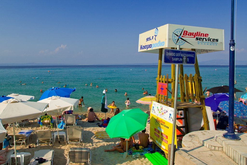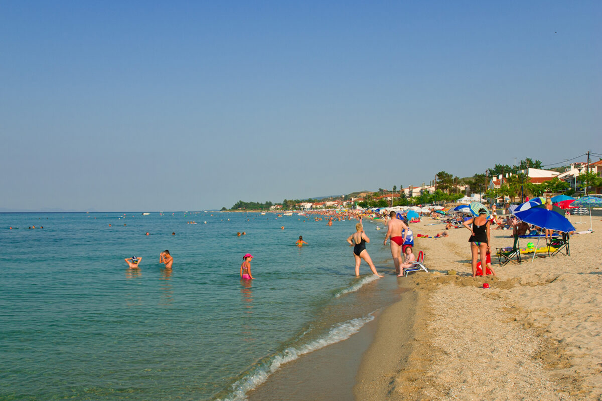Hanioti is a popular tourist resort. The Blue Flag awarded shore is located in frond of the village is a relatively narrow and well-organized, sandy yet with a few pebbles and crystal-clear waters. During summertime it gets crowded while it provides visitors with all the necessary facilities such as restaurants, bars, water sports activities. Also, disabled access is available.