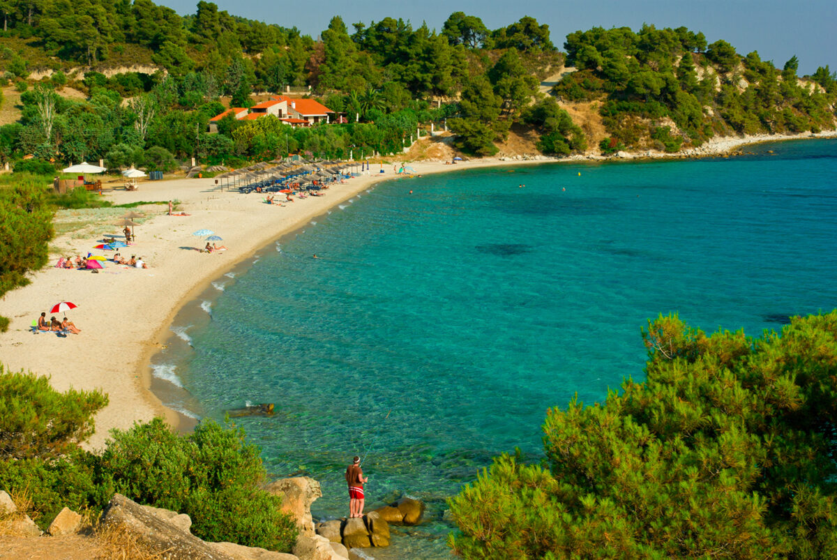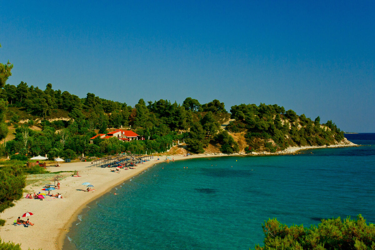 Koviou beach located between Kalogria and Agios Ioannis, is a small thought a delightful spot, ideal for families and children. It has soft white sand and shallow warm waters surrounded by lush vegetation. All tourist facilities are available while the place is perfect for snorkelling.