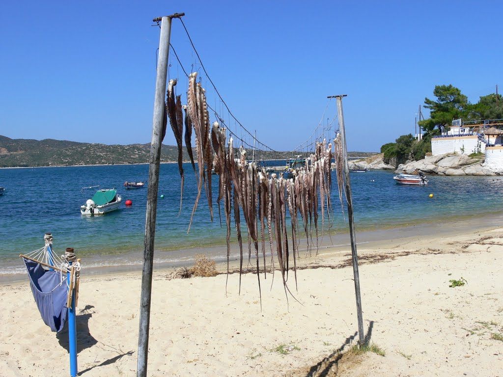 Linaraki is a small thus organized beach, southern of Sykia. It is a sandy and narrow with shallow watersideal for families. The sea is very clean and it never gets crowded. Also, there is a typical taverna alongside the sea with terrific view and the best seafood.