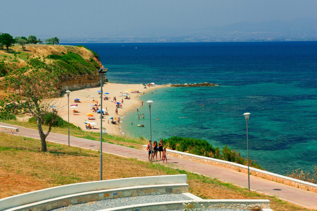 The beach of Nea Fokea, near Sani, simply represents an idyllic scenery with exotic turquoise water. It’s a family-friendly and quite, organized beach with an amazing view towards the Byzantine tower. There is a range of restaurants and typical taverns nearby to taste the freshest Greek seafood.